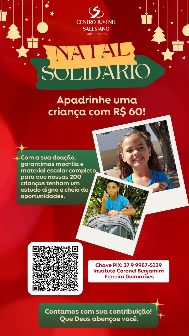 As atividades da instituição ocorrem até o dia 18 de dezembro. Já a campanha que teve início neste mês acontece até o dia 14 de dezembro. A chave para contribuir com esse gesto de solidariedade: (37) 99987-5339 – Instituto Coronel Benjamim Ferreira Guimarães.