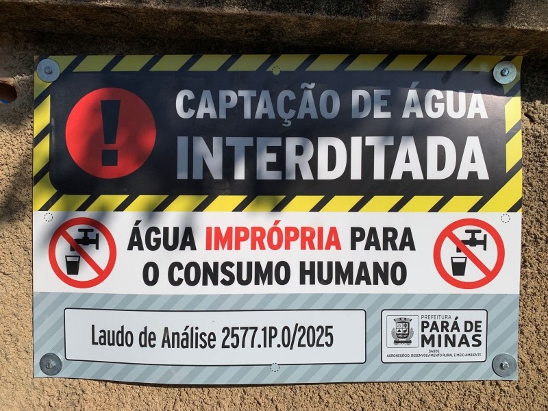 A Prefeitura de Pará de Minas, por meio da Secretaria Municipal de Saúde, anunciou a interdição de pontos de coleta de água em poços artesianos, minas e nascentes no município, usados pela população para consumo próprio.A medida foi adotada após avaliação técnica e exames laboratoriais realizados pela Fundação Ezequiel Dias – FUNED, que constataram contaminação microbiológica da água com a presença de coliformes totais e da Escherichia Coli. A presença das bactérias é um indicativo de contaminação fecal, tornando a água imprópria para o consumo e podendo causar doenças gastrointestinais, como diarreias e vômitos e até outras doenças mais graves.