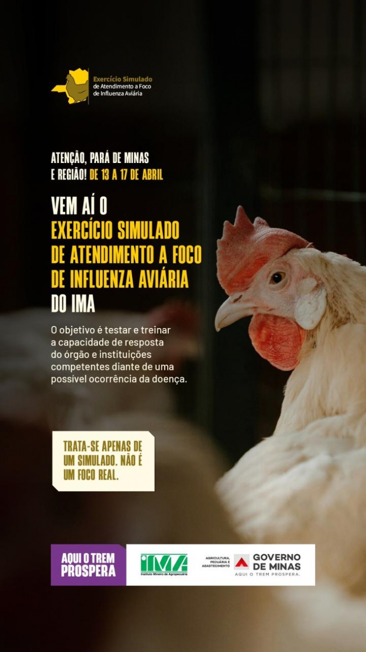 Após o registro de casos de influenza aviária em 2025, que levou à decretação de emergência sanitária em Minas Gerais, o estado já se antecipa e reforça as ações de prevenção em 2026.Entre as medidas está a realização do “Exercício Simulado de Atendimento a Foco de Influenza Aviária”, que acontece entre os dias 13 e 17 de abril, em Pará de Minas e região. A proposta é treinar, na prática, a capacidade de resposta dos órgãos e instituições diante de uma possível ocorrência da doença, como explica o chefe do escritório municipal do IMA, Lucas Silva Jardim.