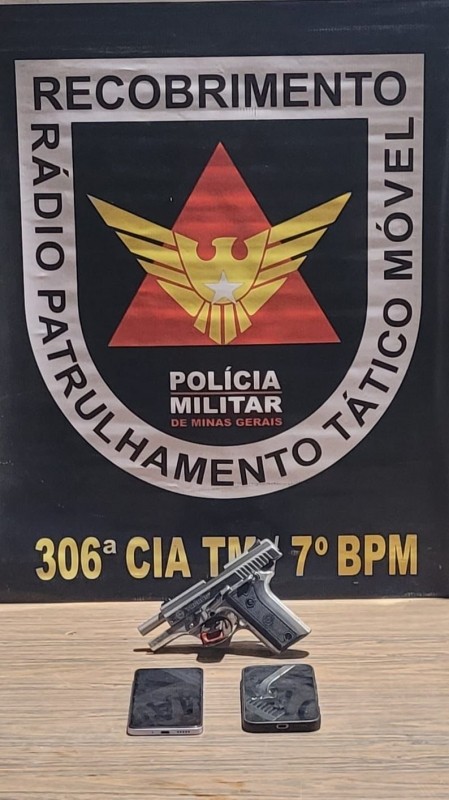 local, sendo uma pistola Taurus calibre .380, que foi apreendida.