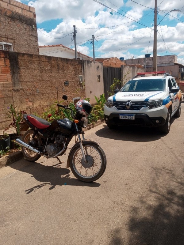 Após os fatos, os militares realizaram intenso rastreamento, momento em que visualizaram um indivíduo saindo de uma rua do referido bairro, com um capacete na mão. Ao acessar a rua, os militares localizaram a motocicleta Honda/CG 125 Fan, estacionada, sendo constatado que se tratava da motocicleta furtada no dia 21, na cidade de Moema.