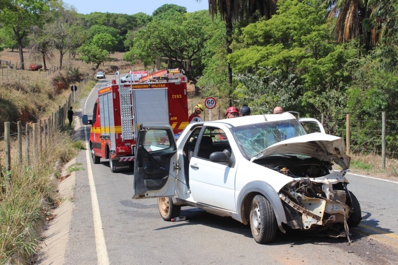 Três pessoas ficaram feridas após acidente entre carro e caminhão nessa terça-feira (7/10), na estrada da Comunidade de Ribeiros, na zona rural de Carmo do Cajuru.