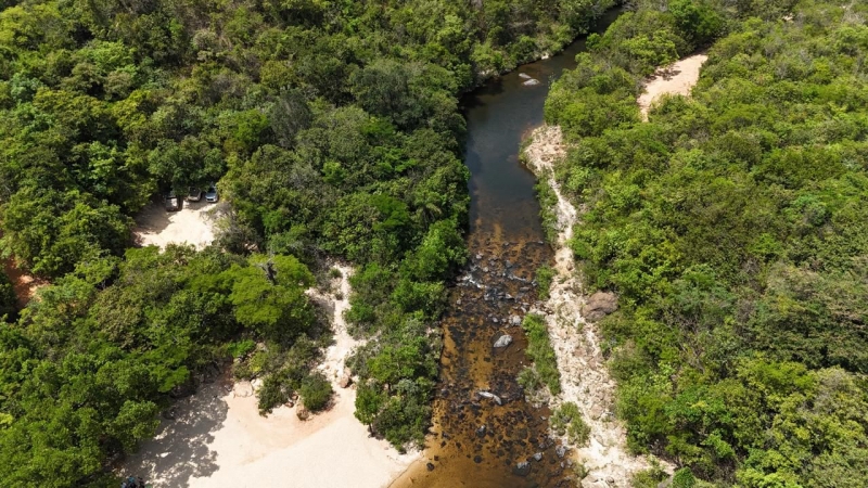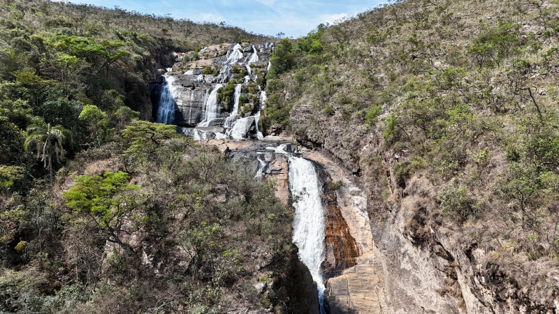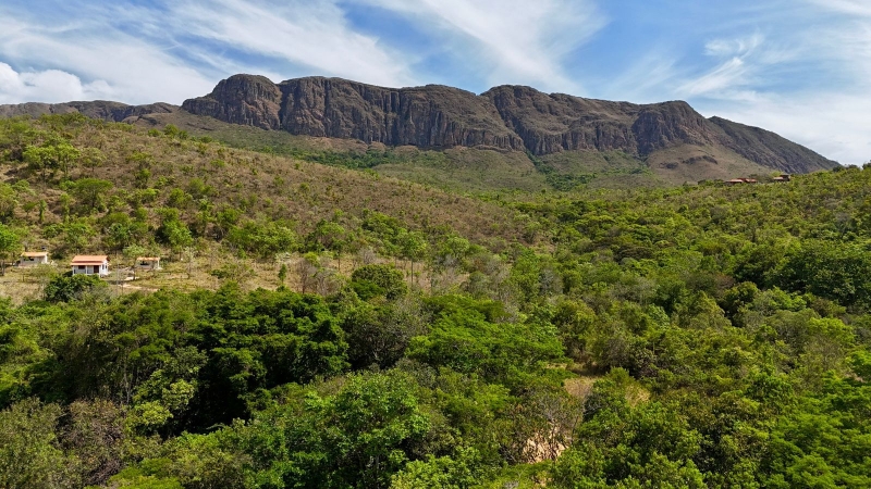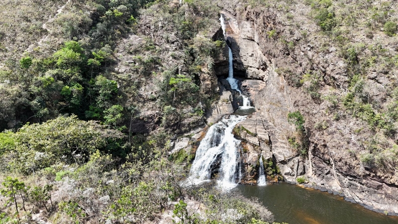 A paisagem ao redor é marcada por vastos campos de altitude e o Cerrado Rupestre, onde capim dourado e variadas flores dividem espaço com as rochas.